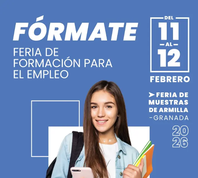 Descubre en Granada todas las oportunidades de formación que necesitas. Fórmate, la única feria en la provincia dedicada a conectar a estudiantes con el futuro laboral, te espera en la Feria de Muestras de Armilla. Entrada gratuita. ¡Prepárate para impulsar tu carrera!